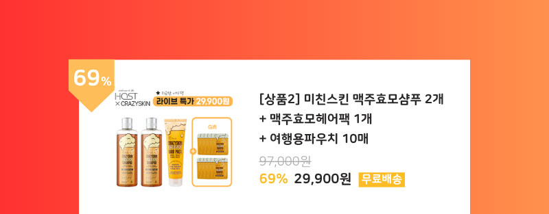 [웰컴투더호스트] 미친스킨 맥주효모샴푸 2개 + 여행용파우치 10매